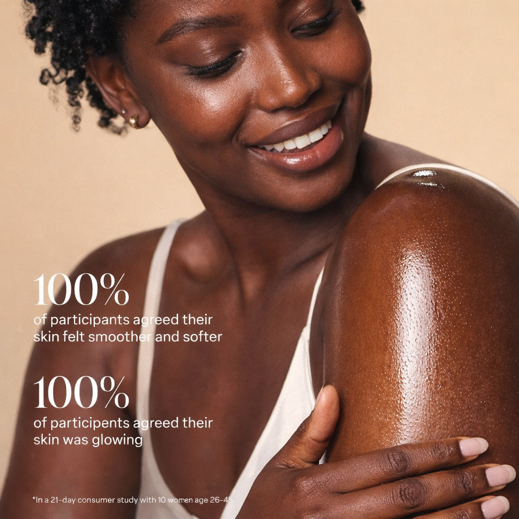 Apply generously to damp or dry skin and massage in until fully absorbed. Focus on areas that need extra moisture for a soft, radiant glow.